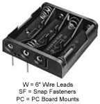 Holds 4 AAA Batteries, 6" Wire Lead |