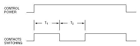 RECYCLE TIMING - The first delay period begins when input voltage is applied. At the end of the first delay, or "OFF" period, the internal relay pulls in, and the second delay, or "ON" period, begins. When the second delay period ends, the relay drops out. This recycling sequence will continue until the removal of input voltage. When input voltage is removed, the relay drops out.